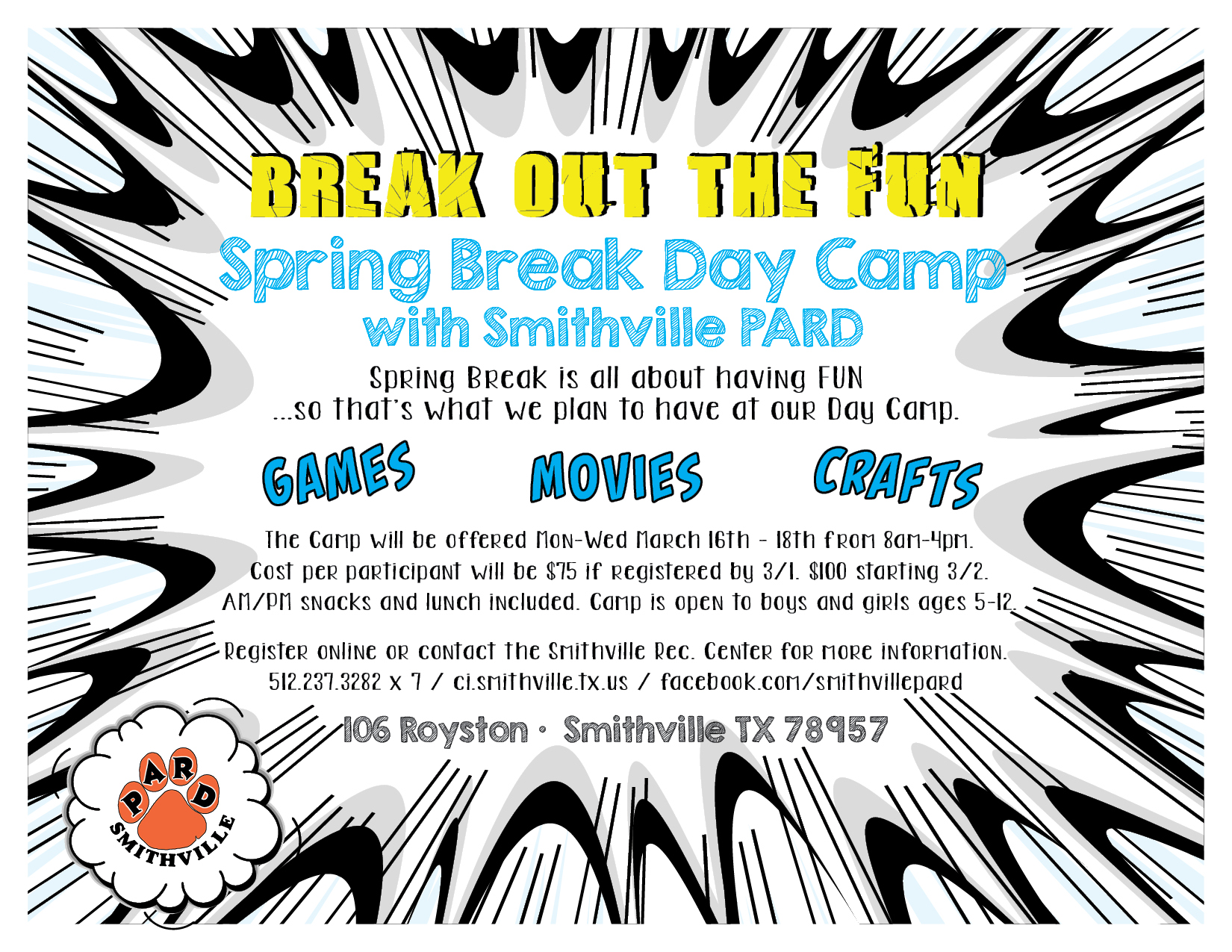 Register for camps at smithville.recdesk.com in the programs section