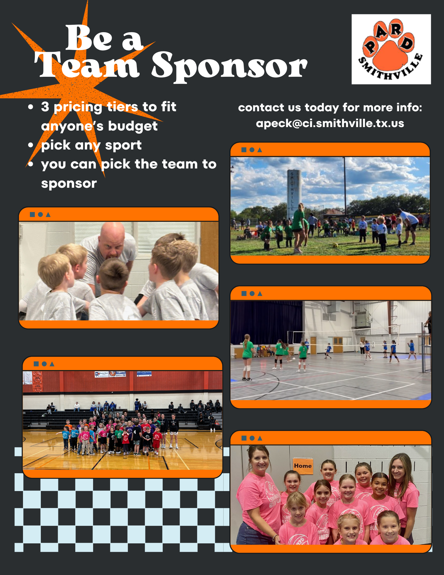Individuals and/or businesses have an opportunity to show support for our youth programs. We have 3 sponsorship options to choose from to fit into anyone's budget. Sponsor Form If you'd like to just sponsor 1 child, ask us about that option too!